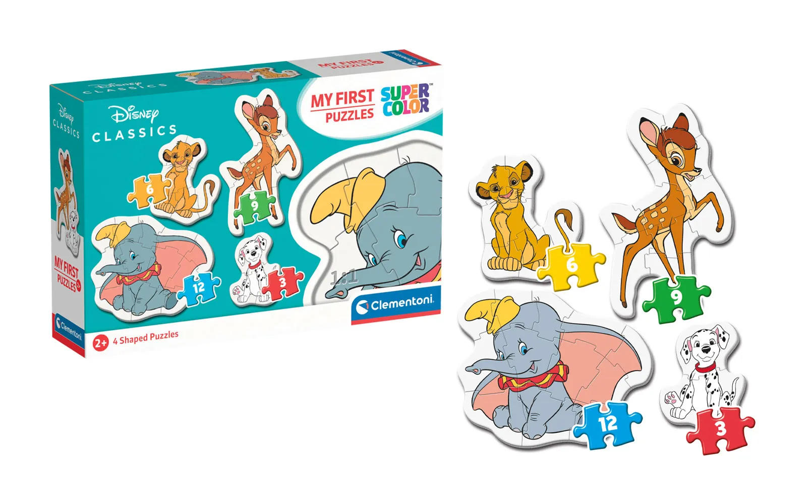 Puzzle baby my first contains simple and cute puzzles for our little ones. Included are 4 separate puzzles that have a different number of parts (from 2 to 12). Puzzles are more than suitable for a child's first puzzle. Available in Jumbo theme.