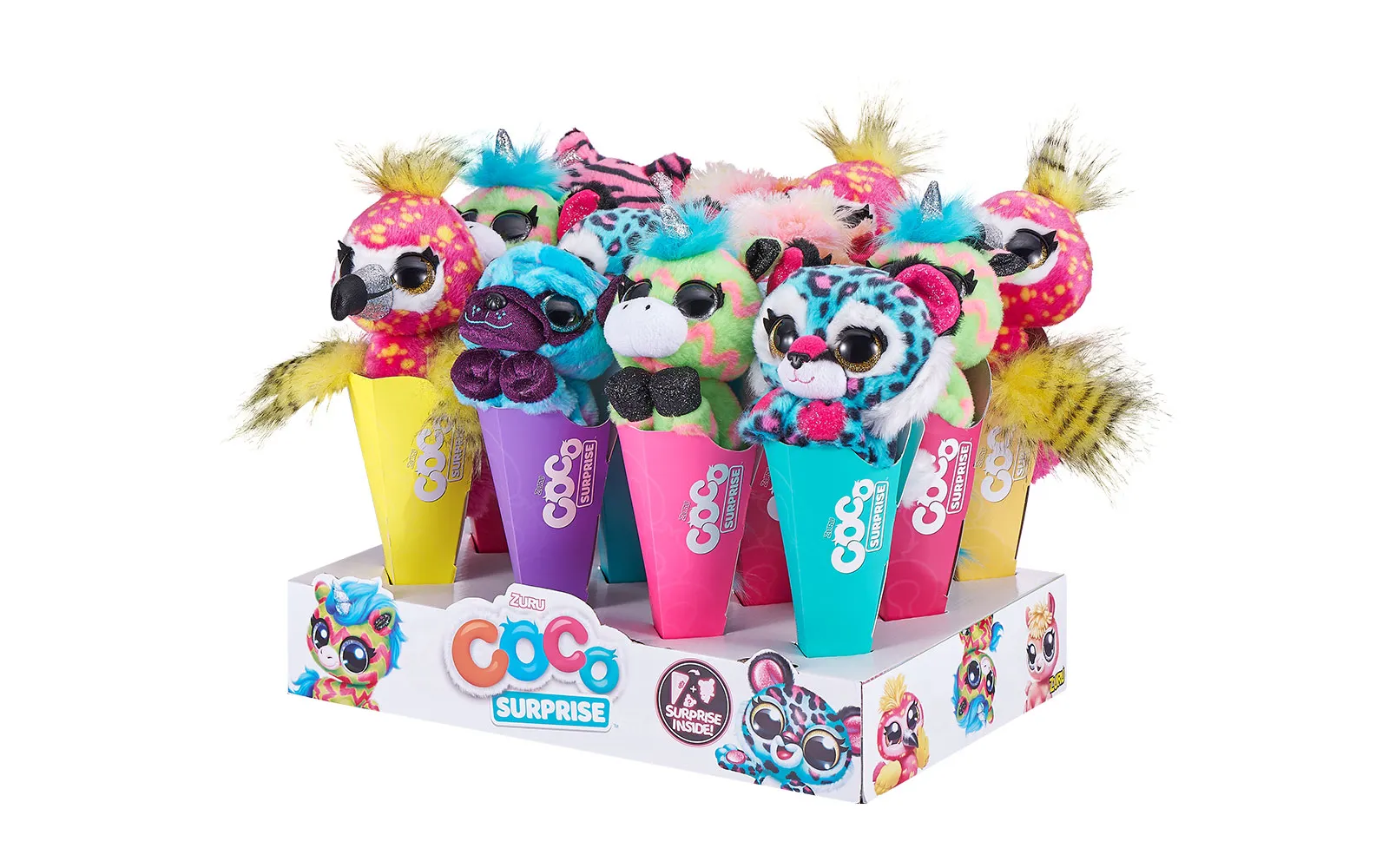 Coco cones neon are plush toys in neon colors which makes the plushies even more interesting! In the cone you get a plush animal approximately 15 cm in size and a small baby friend. Colorful animals with their big eyes and cuteness charm everyone. Available in the motifs of a parrot, tiger, cat, dog and more.