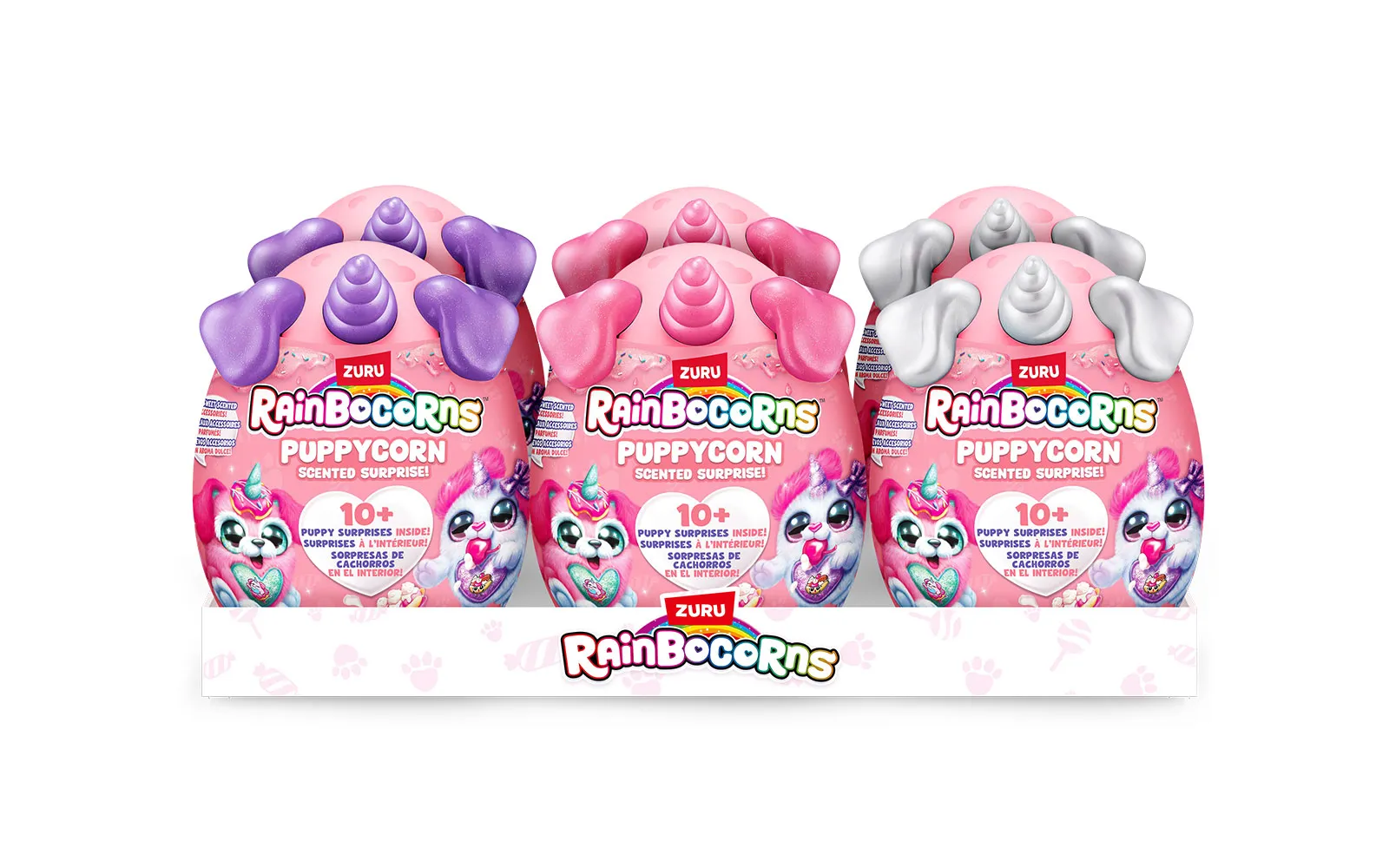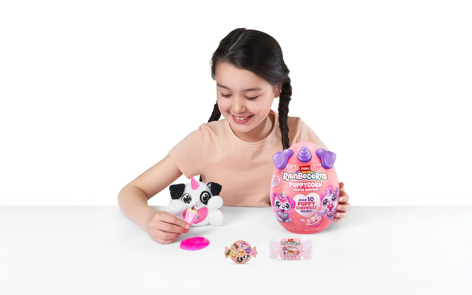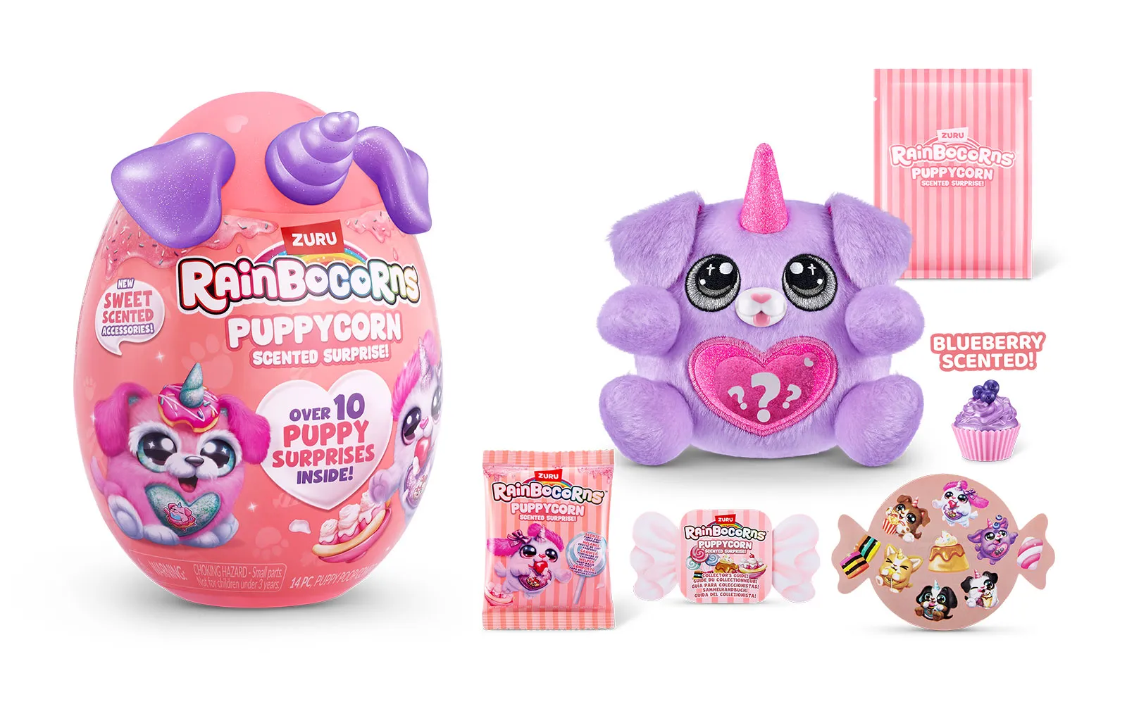 The set includes 1x Puppycorn Surprise Egg, 1x Puppycorn plush toy with a Peel ‘n’ Reveal Magic Heart on the tummy of the toy, under which a small picture is hidden, 1x-scented accessory, 9x Puppycorn stickers, 1x Magic Puppy Poop, collectors guide. There are 7 different fluffy pet toys available. The content of the item is random and completely independent of the various details on the packaging.