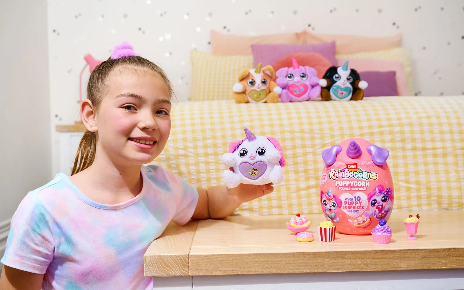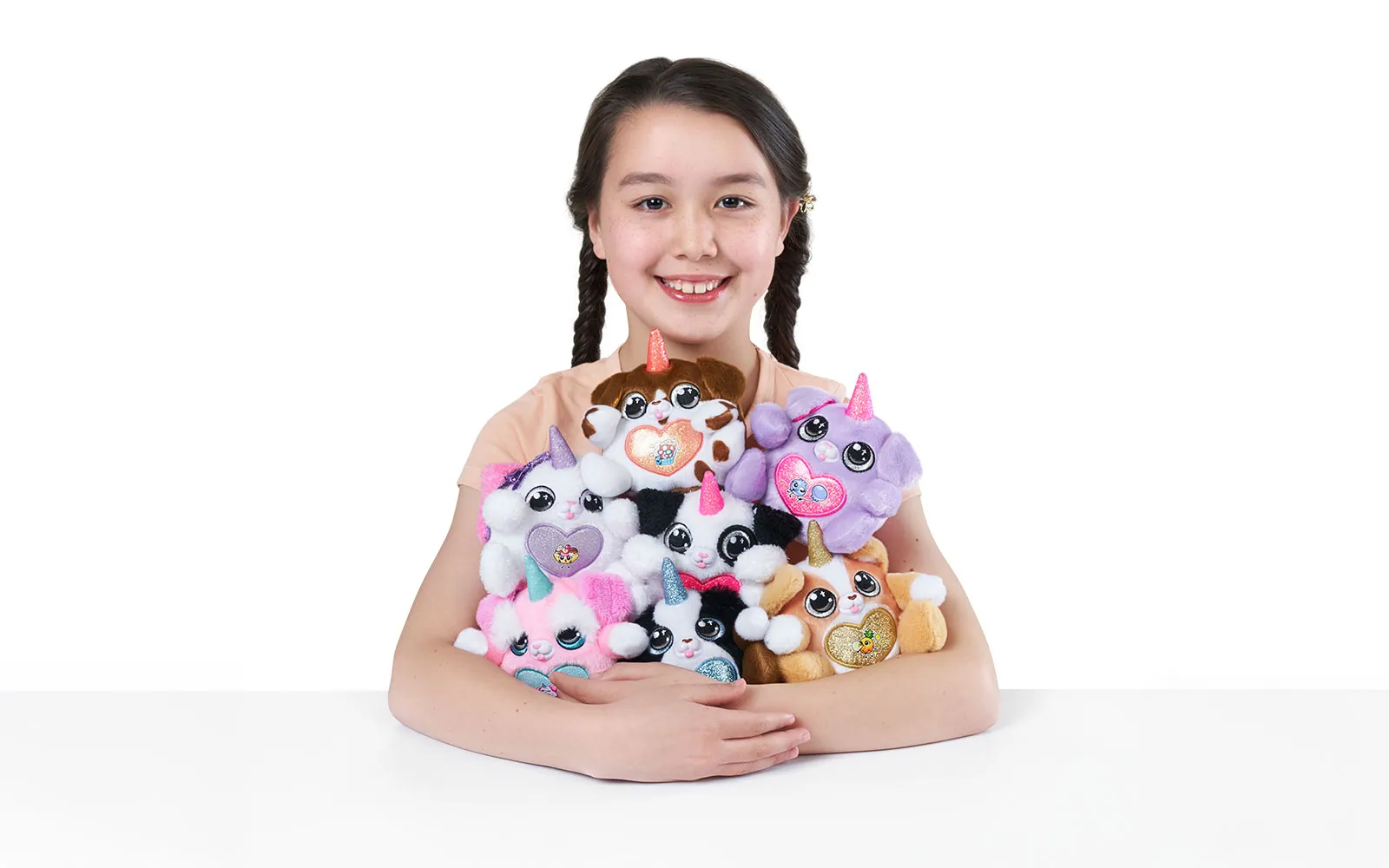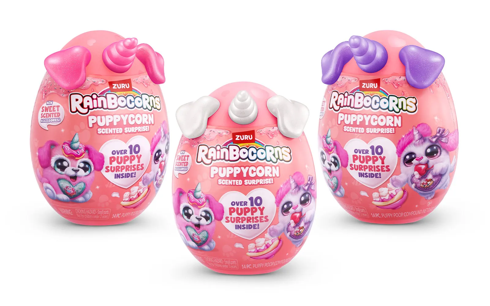 The set includes 1x Puppycorn Surprise Egg, 1x Puppycorn plush toy with a Peel ‘n’ Reveal Magic Heart on the tummy of the toy, under which a small picture is hidden, 1x-scented accessory, 9x Puppycorn stickers, 1x Magic Puppy Poop, collectors guide. There are 7 different fluffy pet toys available. The content of the item is random and completely independent of the various details on the packaging.
