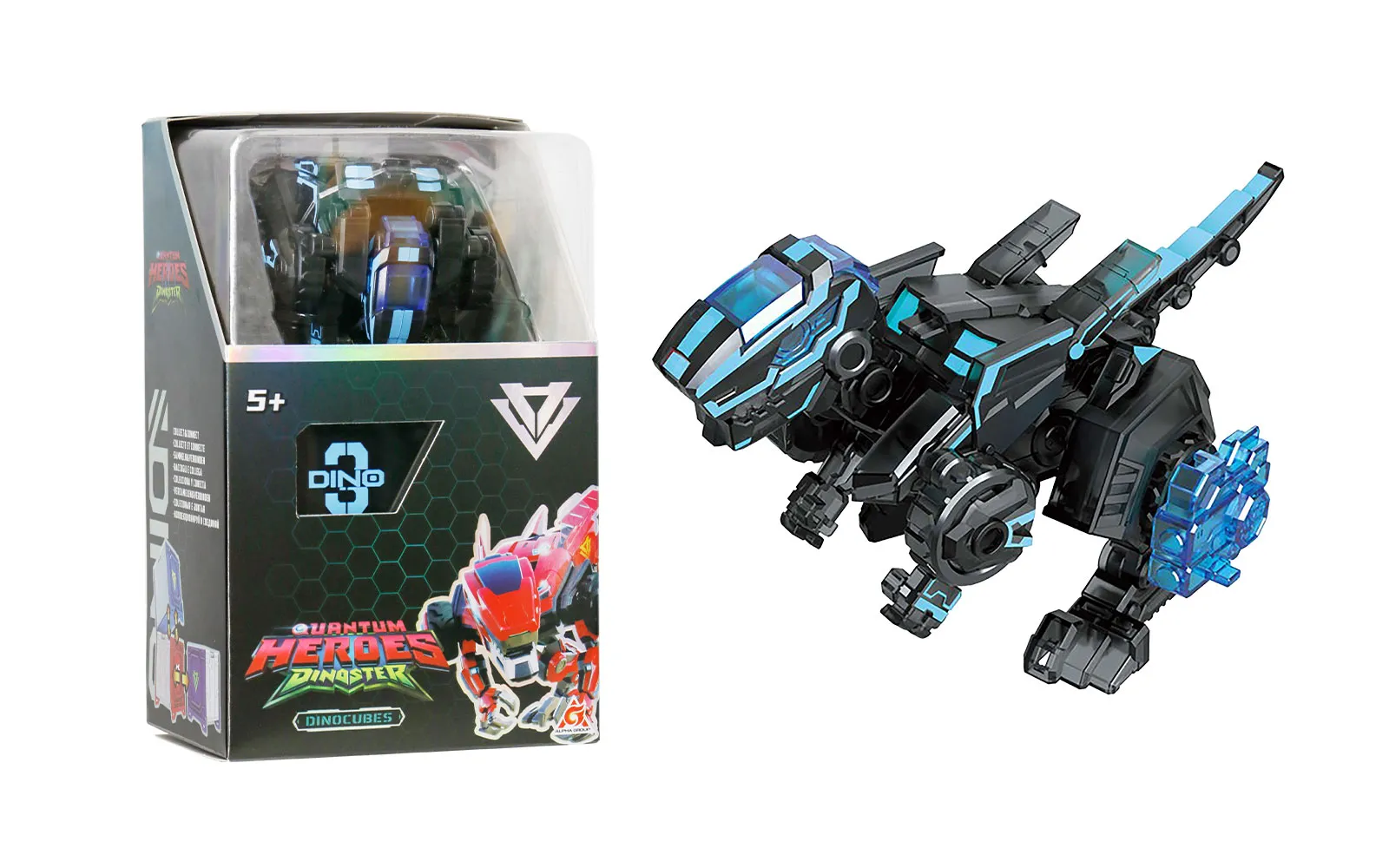 Discover the amazing world of dinosaurs with the Dinoster team! Through their adventures, four friends overcome big challenges to protect the dinosaurs. Welcome to the Dinoster team! Explore the world of dinosaurs and embark on an adventure with the Black Dinocubes Raptorbot, Dinoster. The set includes 1 Raptorbot, which transforms from a vehicle into a dinosaur-shaped robot.