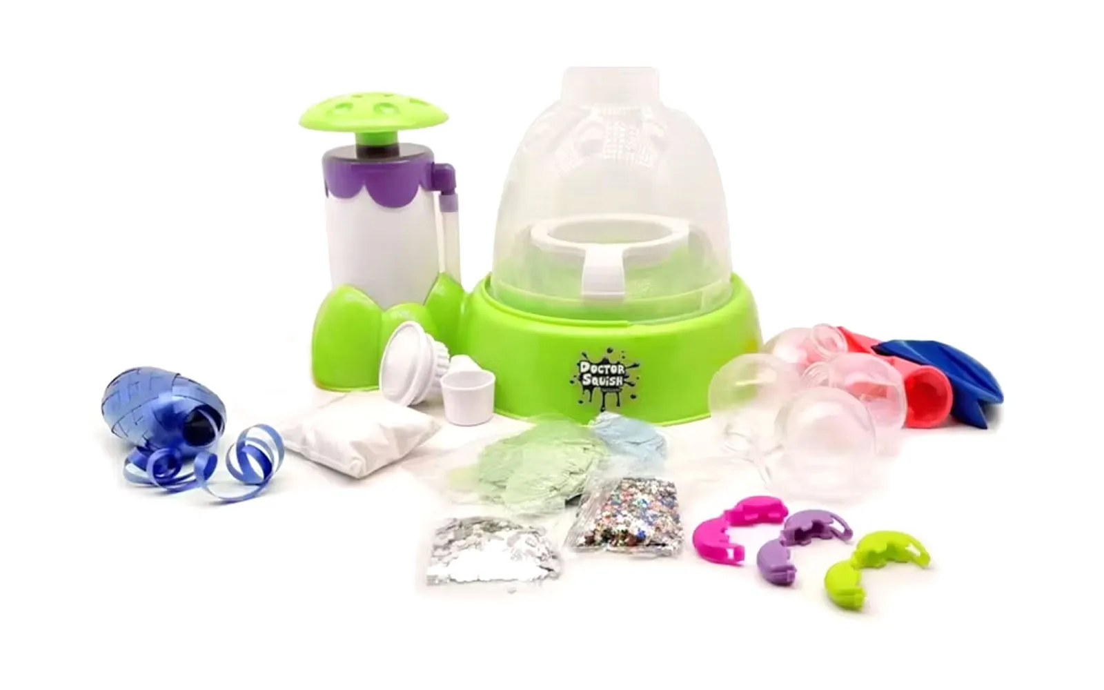 Doctor Squish - Squishy maker. This is a fun and extremely creative set for children, which is not only entertaining, but also very educational. Use the Squishy Maker to inflate your squishy to the perfect size, then fill it with materials of your choice. Let your imagination run wild - be it slime, glitter, confetti, or something completely unique. The set includes instructions for use, Squishy maker, 1 spoon, and slime, glitter, and confetti, 8 reusable clips, 1 curly ribbon. The item is suitable for children from the age of 8 onwards.