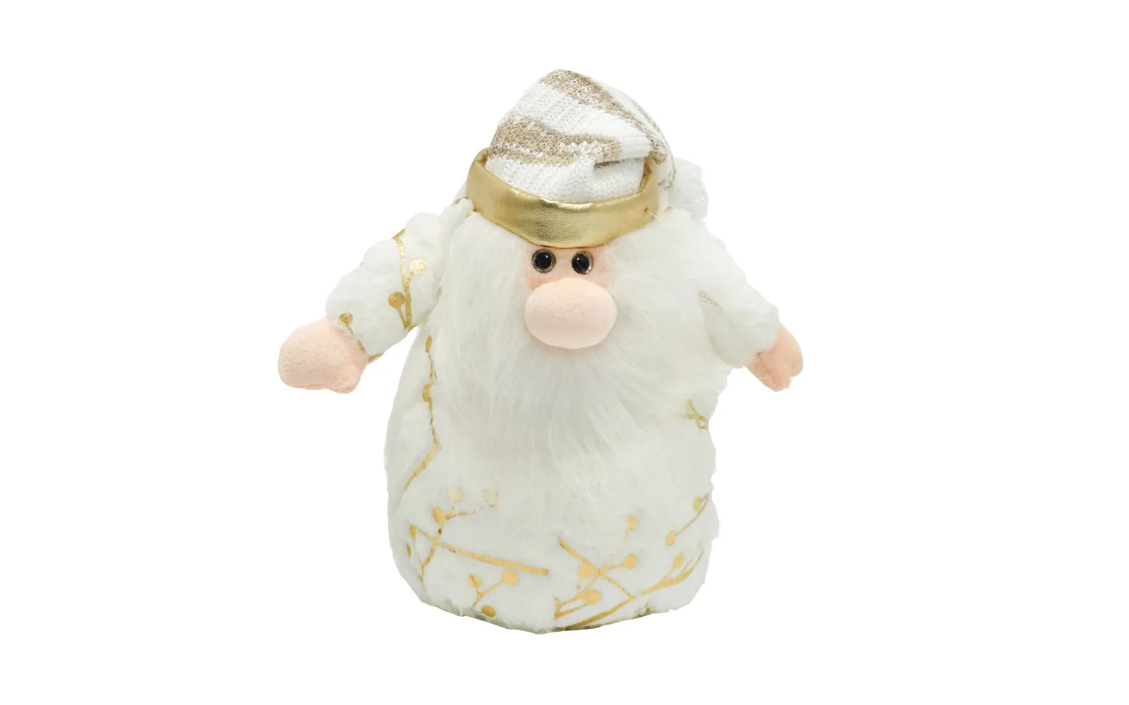 Santa Claus is 23 centimeters in size and white in color. He has a warm hat, a beard, and wonderful gold details that give him a festive glow. Santa Claus is exceptionally soft to the touch, so he will be a great companion for winter days and festive decoration of your home!