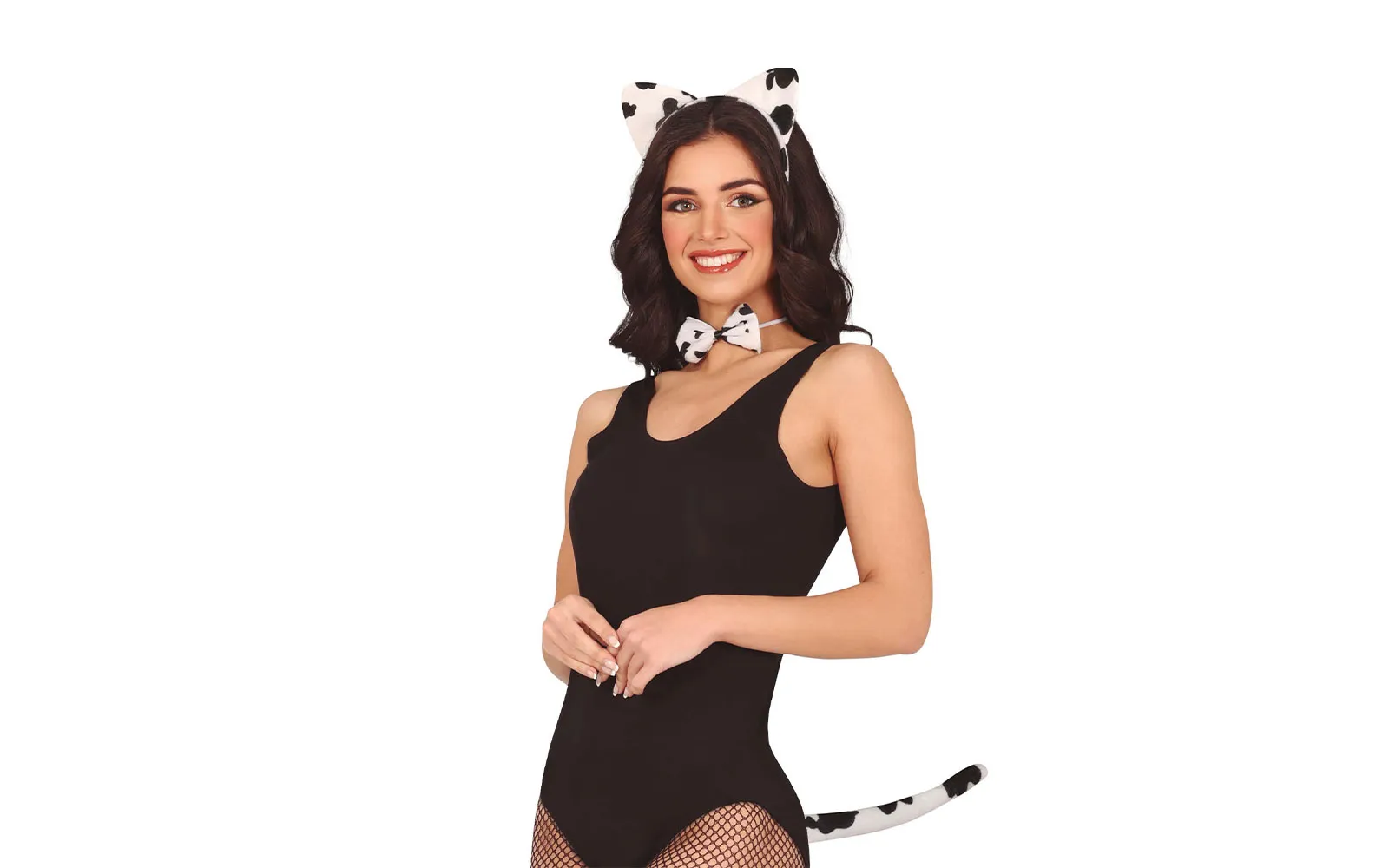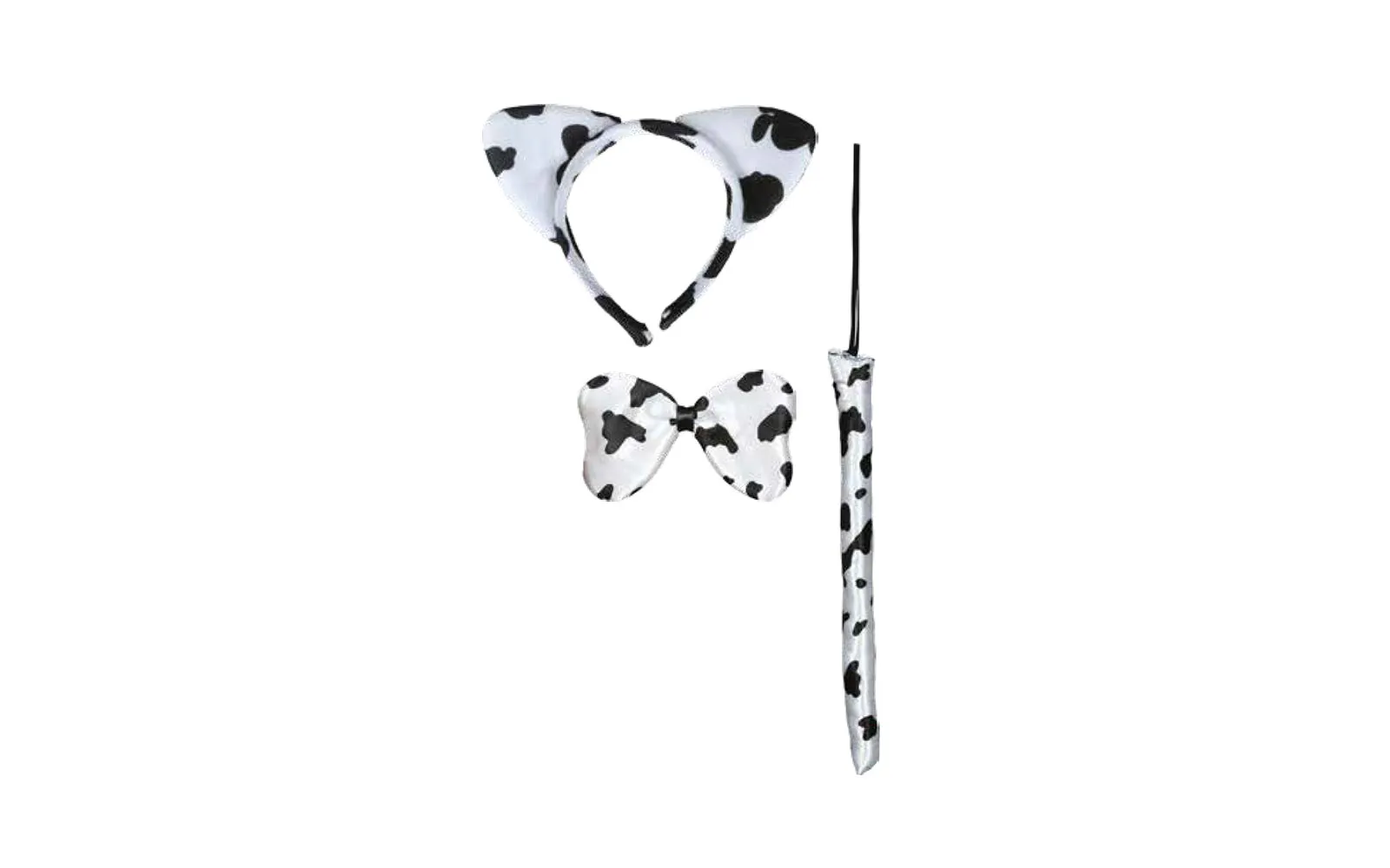 Carnival headband Dalmatian + butterfly + tail.. Transform into a wonderful puppy with this playful set! It includes a headband with Dalmatian pattern ears, a matching bow tie for around the neck, and a long tail. The perfect addition to a dog costume for carnivals, theme parties, or stage performances. The set is intended for adults and will definitely attract attention!