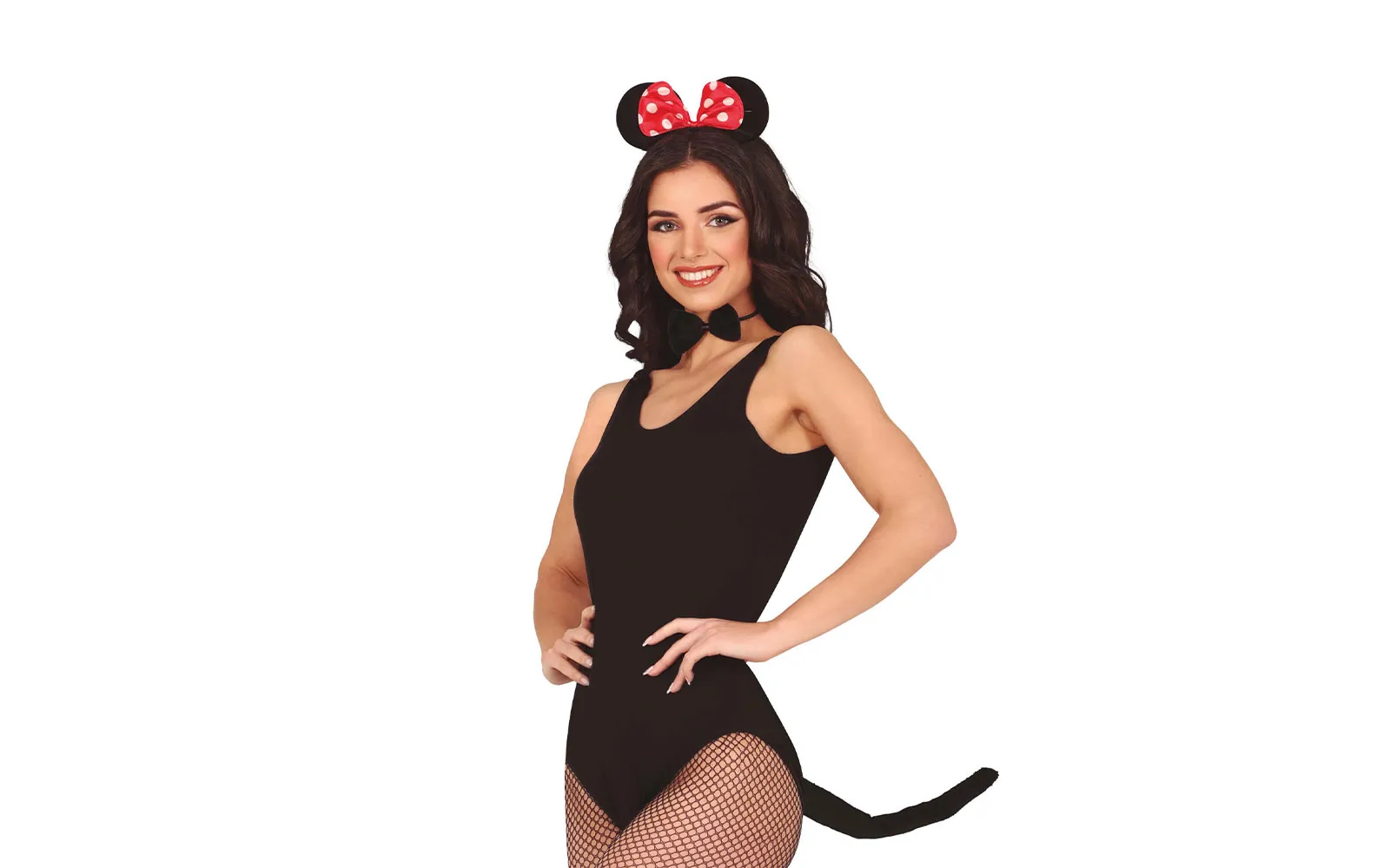 Carnival headband Mickey + butterfly + tail.. Transform into a mouse with this playful set! It includes a headband with ears, a matching bow for around the neck, and a long tail. The perfect addition to a mouse costume for carnivals, theme parties, or stage performances. The set is intended for adults and will surely attract attention!