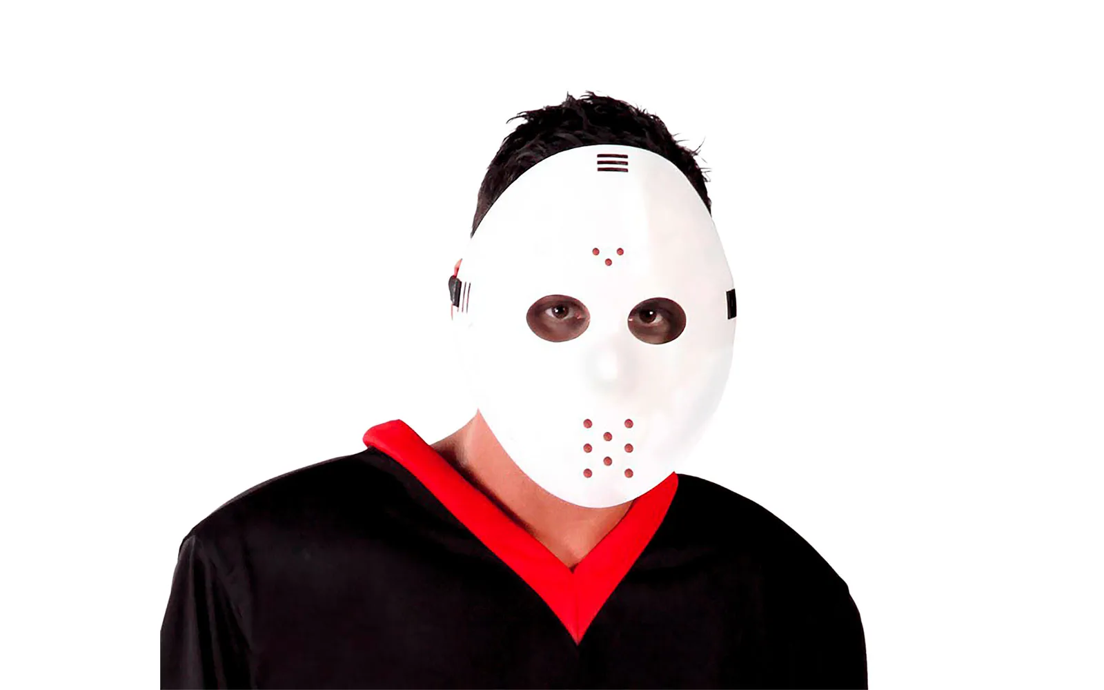 The carnival hockey mask FG in white color is made from lightweight, but durable PVC material. It's ideal for costume parties, role-playing, or as an addition to sports props. The mask fits comfortably to the face and has ventilation holes for easier breathing.