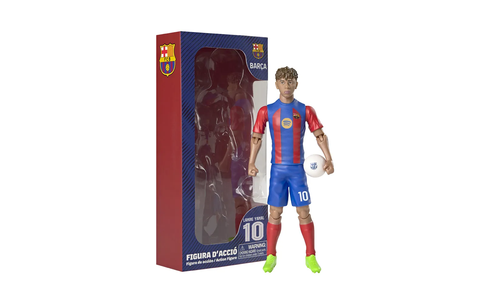 Football figure, Lamine Yamal, 20 cm. Discover the authentic figure of the popular football player Lamine Yamal. The figure is of high-quality workmanship, has movable limbs, wears the club number, and comes with a football.
