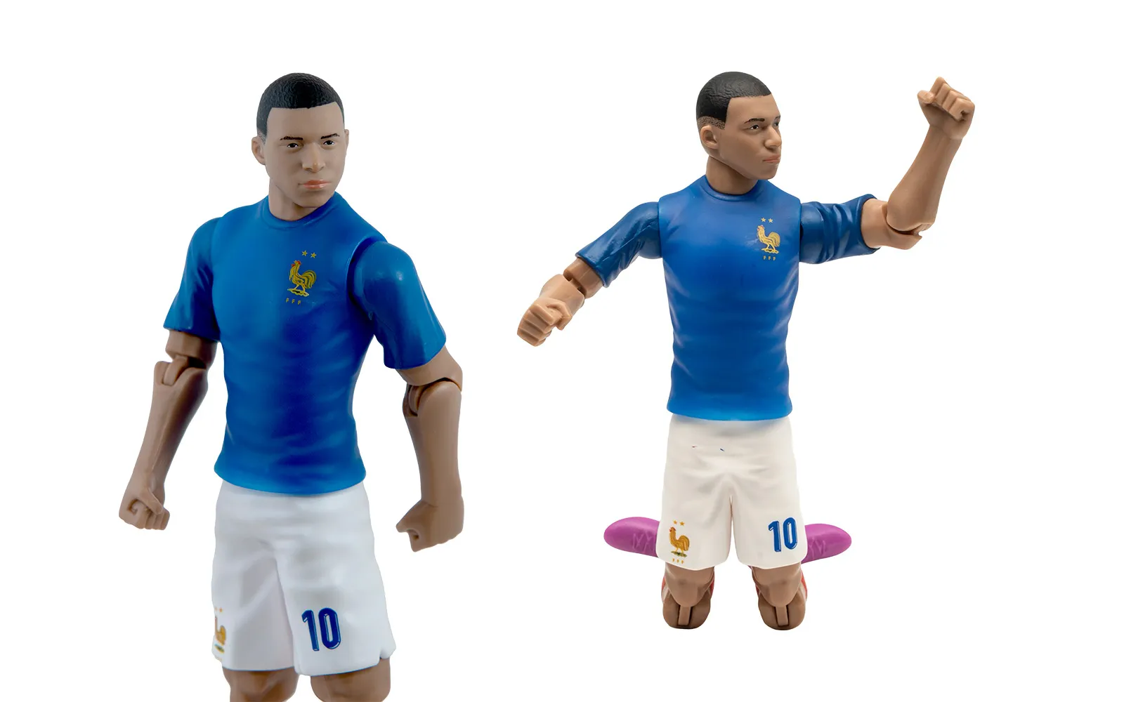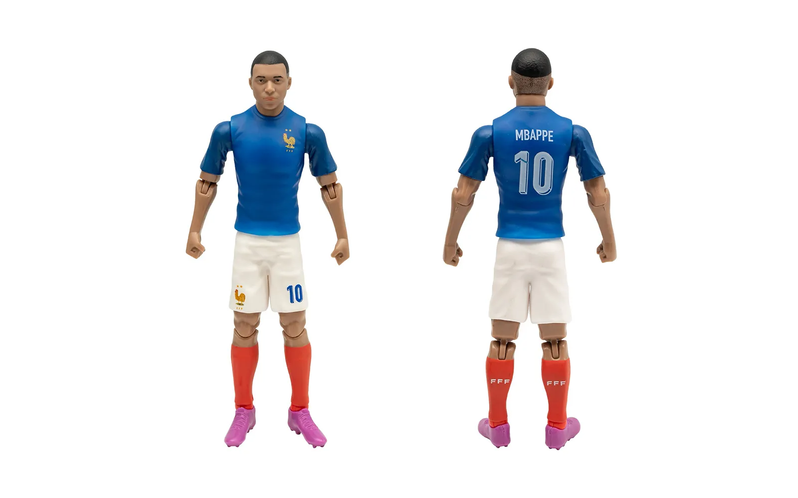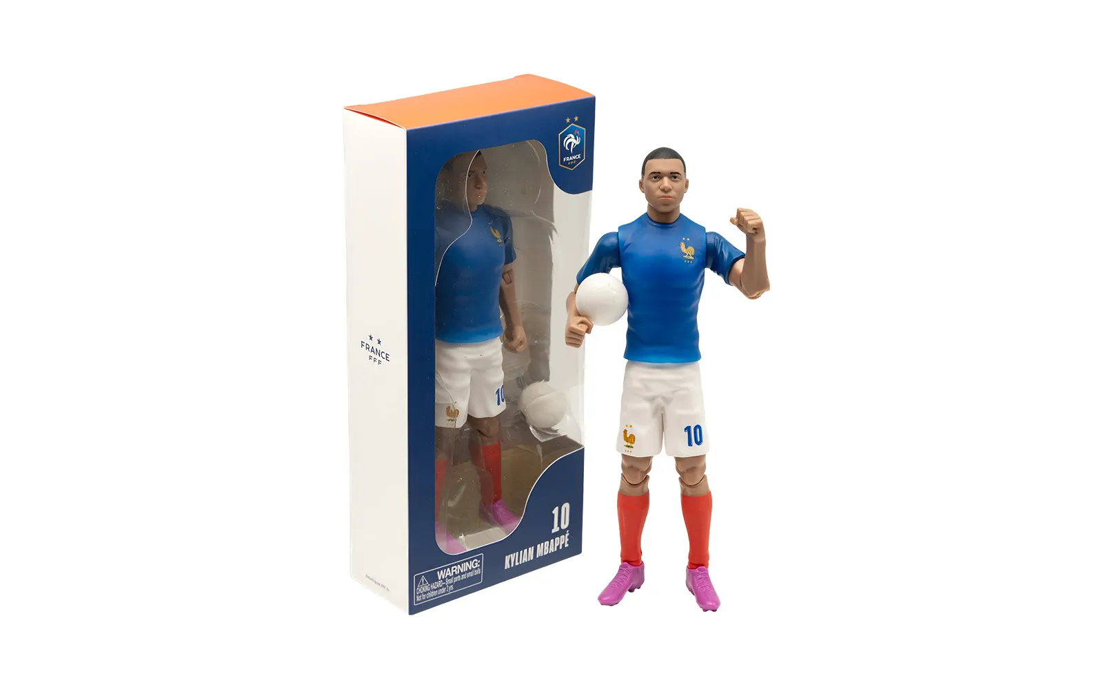 Football figure, Mbappe, 20 cm. Discover the authentic figure of the popular football player MBappe. The figure is of high-quality craftsmanship, has movable limbs, wears the club's number and includes a football ball.