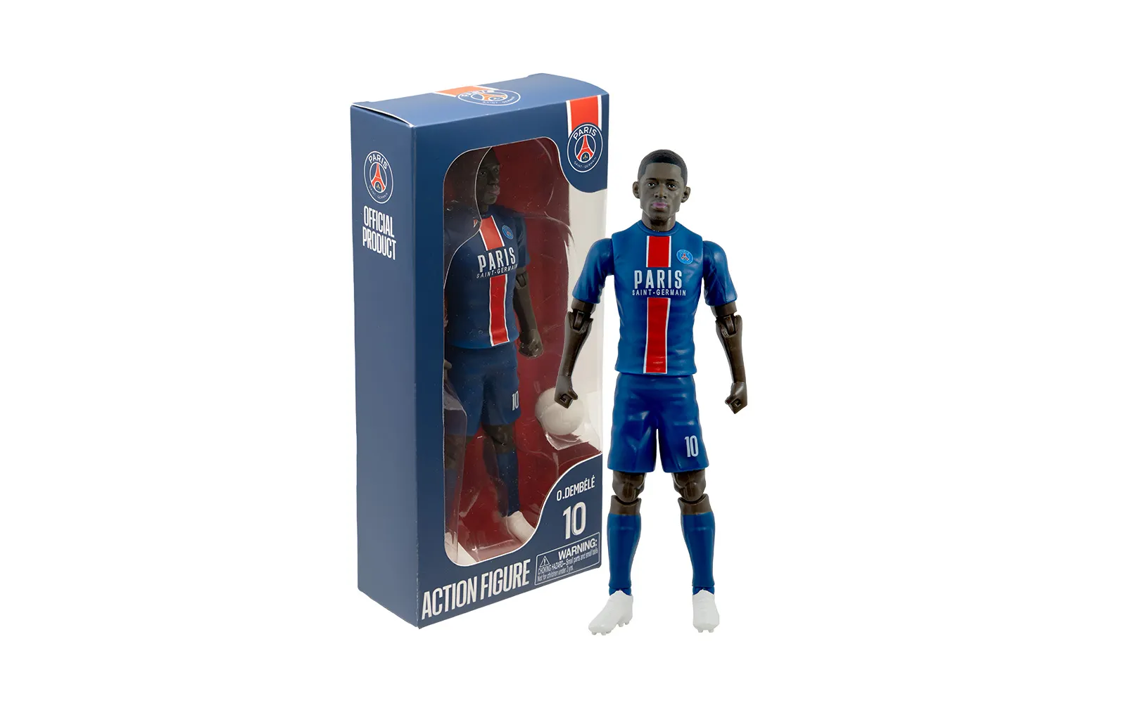 Football figure, Dembele, 20 cm. Discover the authentic figure of the popular football player Dembele. The figure is of high-quality craftsmanship, has movable limbs, wears the club number, and comes with a football.
