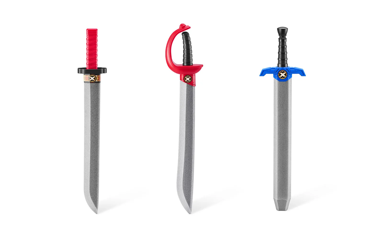 Become a top-notch swordsman with X-Shot swords. You can choose your favorite from two colors and compete with friends. Be a pirate, ninja warrior, or medieval knight and experience hours of thrilling adventures! Available in black or red color.