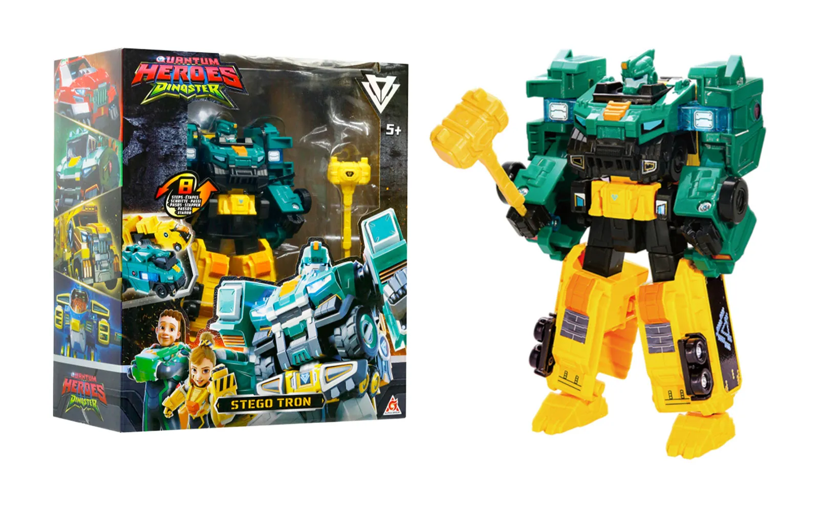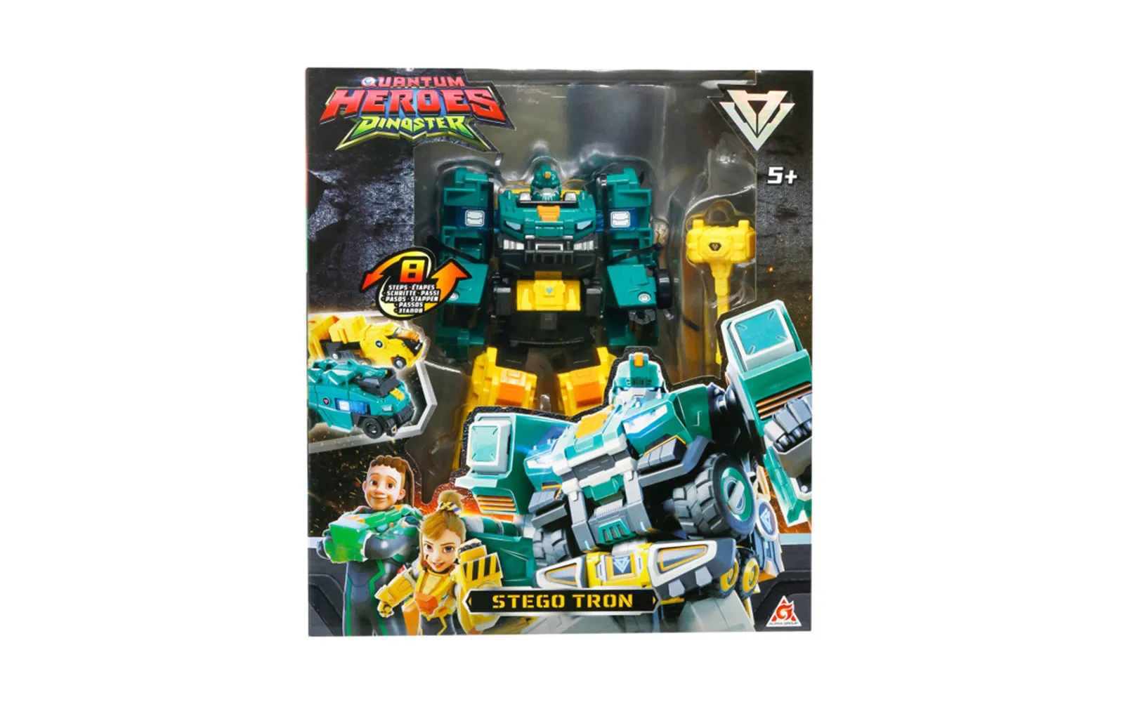 Discover the incredible world of dinosaurs with the Dinoster team! Through their adventures, four friends overcome great challenges to protect the dinosaurs. Welcome to the Dinoster team! Explore the world of dinosaurs and embark on an adventure with little stego Tron, Dinoster. Study and save dinosaurs with little stego Tron! The transformer robot Stego Tron 2 in 1 is composed of more than 30 movable parts. In just a few simple steps, transform the Dino robot into a dinosaur truck. Detachable weapon can be reassembled according to your fighting style – quantum swords or quantum bow. Recreate scenes from the cartoon with the background in the box. The set includes a 22 cm tall transformer robot, accessory, stickers, and instructions. The 2 in 1 transformer robot play set is made from high-quality plastic.