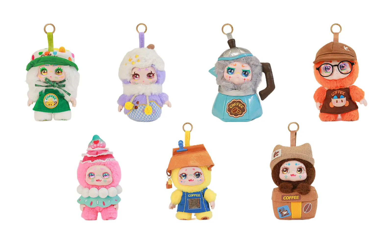 Welcome to the world of Kimmon toys, where imagination meets surprise, and every box hides its own magic. The Kimmon line specializes in so-called blind boxes or surprise boxes - in which a mysterious figurine is hidden, which you discover only upon opening. Each series is carefully designed with a unique theme, sophisticated characters, and a lot of collector's value. Kimmon toys stand out for their recognizable artistic aesthetics, quality craftsmanship, and playfulness. Plush keychain Let's cafe, Kimmon. The toy is 17 cm in size. You can collect up to 7 different toys, one of which has a special design. An ID card is also included in the box. The toy will delight your child with big eyes, a cute appearance, and a pleasant touch.