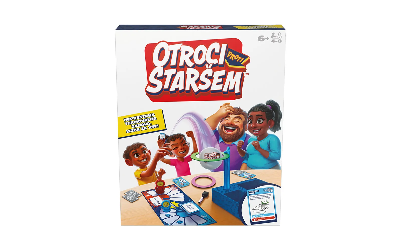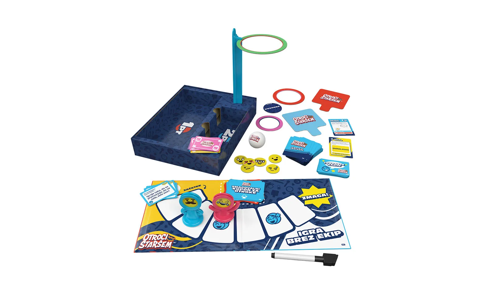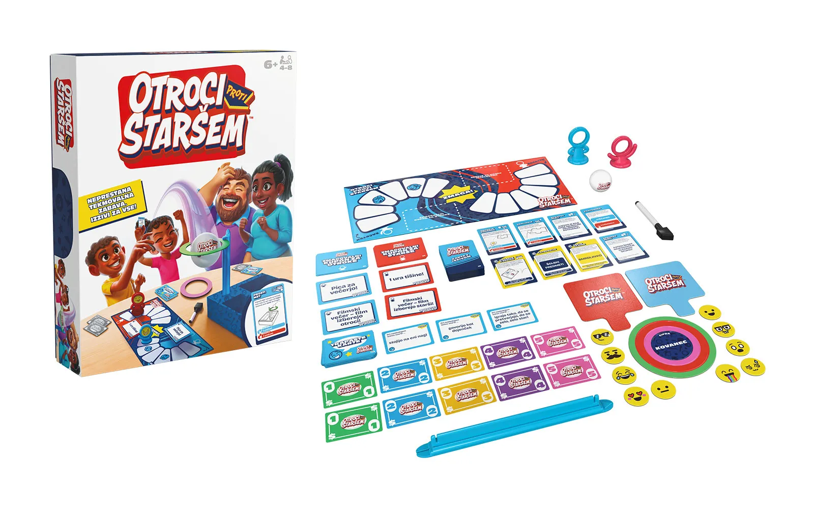 Here’s a fun game: Kids vs. Parents, Series 2! The set actually includes two different games: “TEAM GAME – KIDS VS. PARENTS” and “GAME WITHOUT TEAMS – KIDS VS. PARENTS.” In the team game, a team of kids competes against a team of parents, with no one having any advantage. The teams complete challenges that equally test the abilities of both kids and parents. But beware — this is not the classic Kids vs. Parents game. New active twists and hundreds of hilariously outrageous challenges ensure that family game nights will never be the same again! In the game without teams, the special feature is that each player (child, parent, or anyone else) plays individually, with specific rules detailed in the included instructions. Game contents: 120 standard cards (100 challenge cards, 10 winning coupons for parents, 10 winning coupons for kids), 50 mini cards (40 silly cards and 10 money cards), 2 team figurines, 1 perforated board (with 3 rings, 2 tablets, 10 emoji tokens, and 1 coin), 1 dry-erase marker, 1 small ball, 1 stand, 1 game board, and instructions. The game is suitable for children aged 6 and up and for 4 to 8 players.