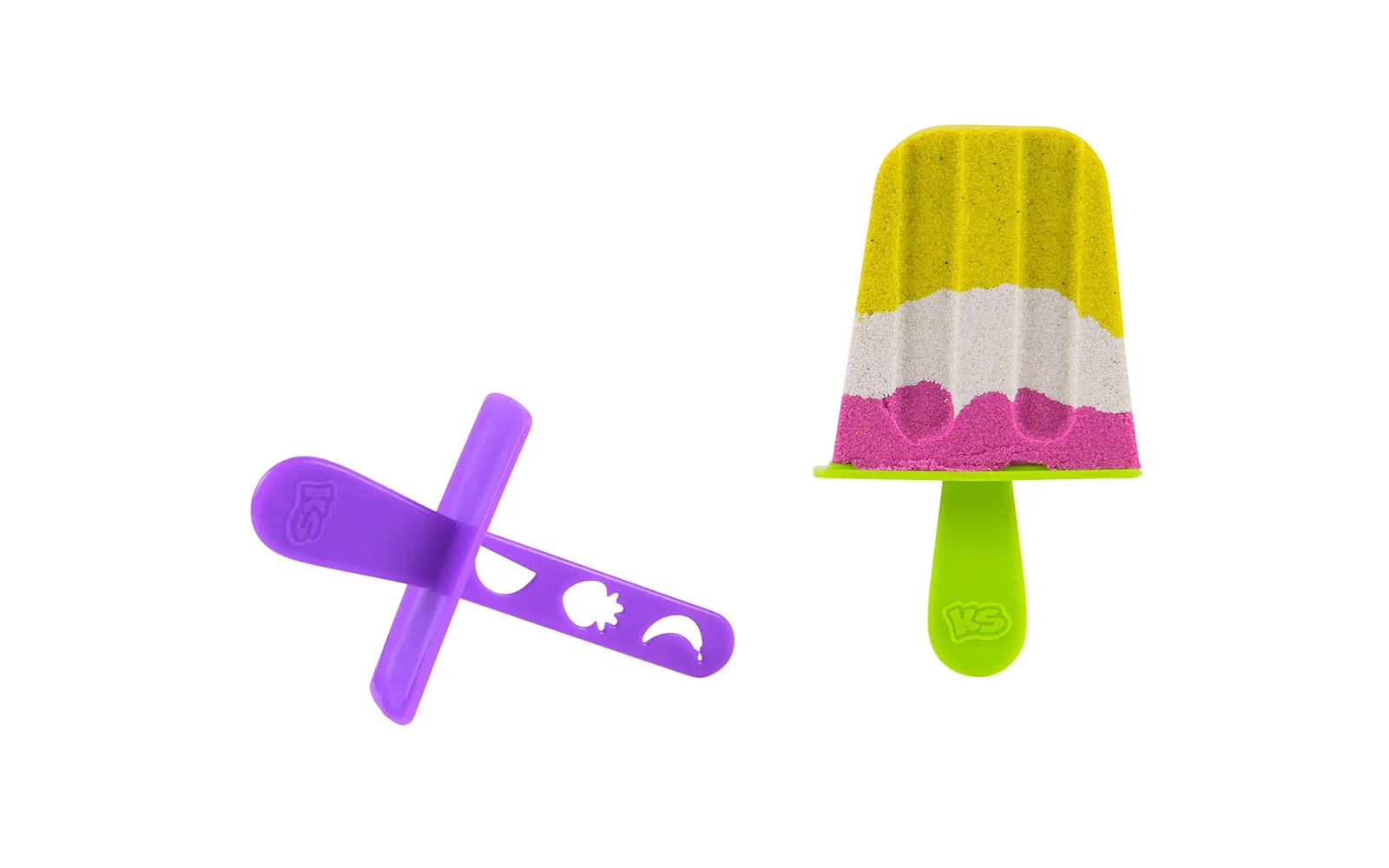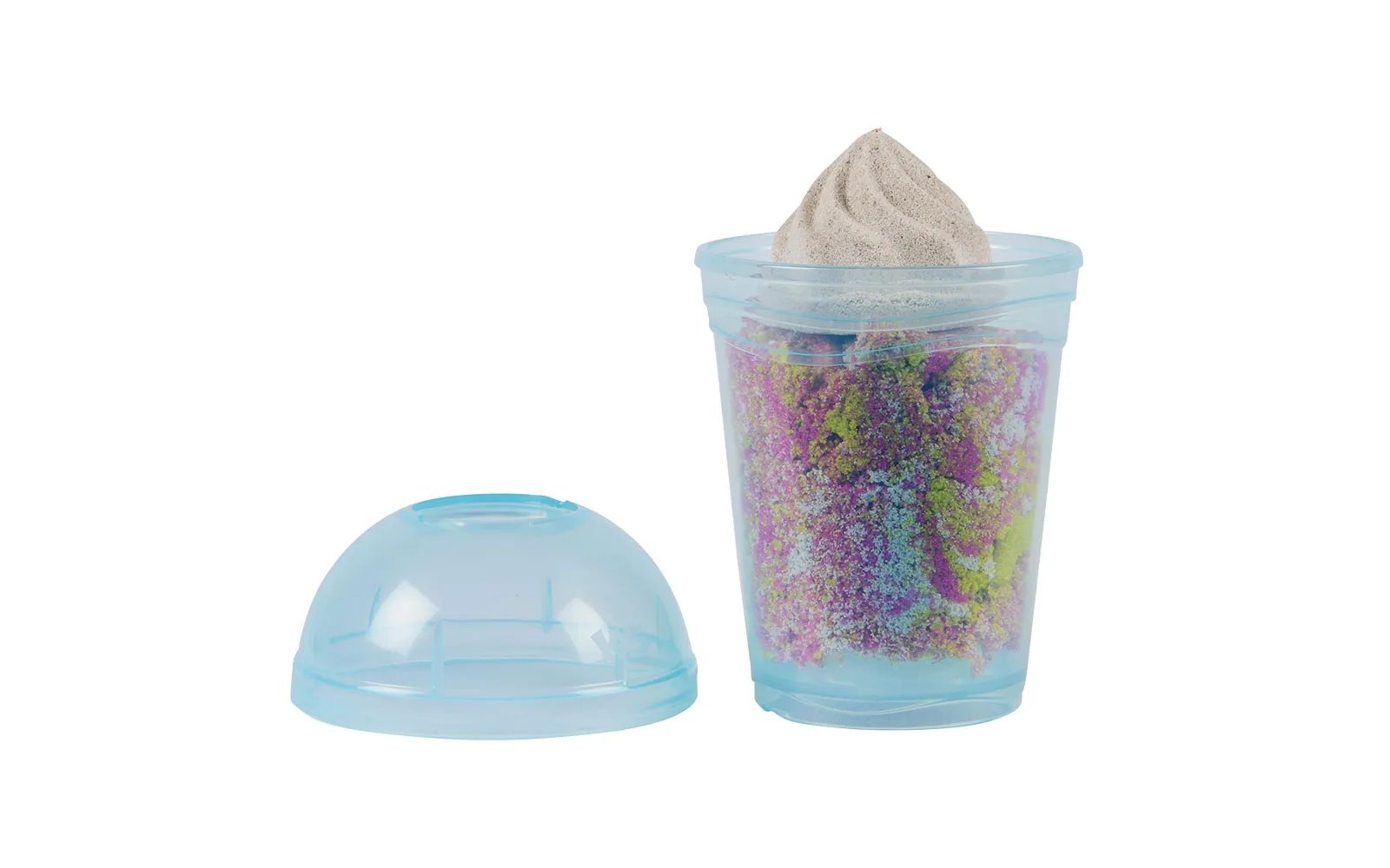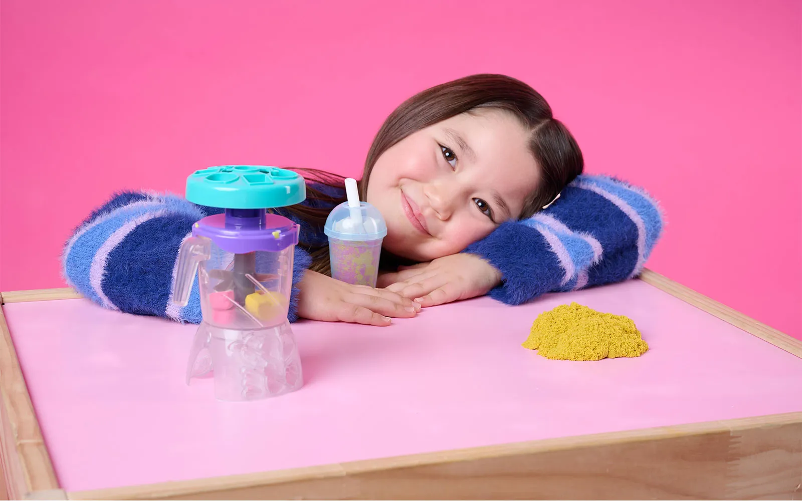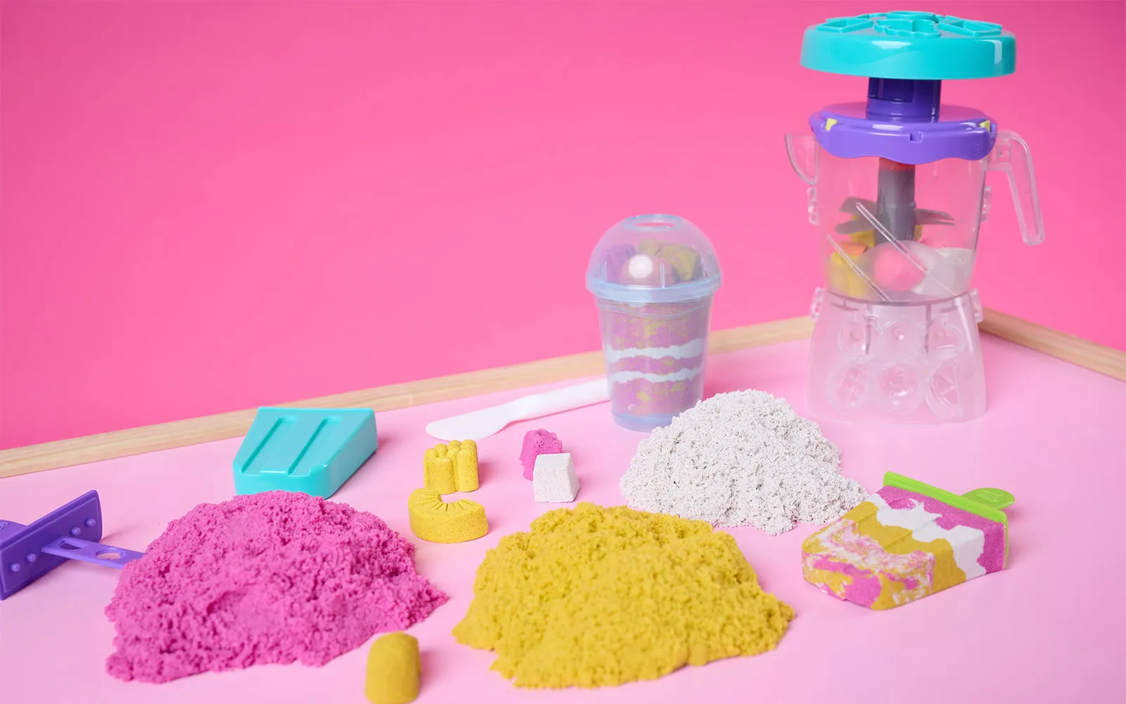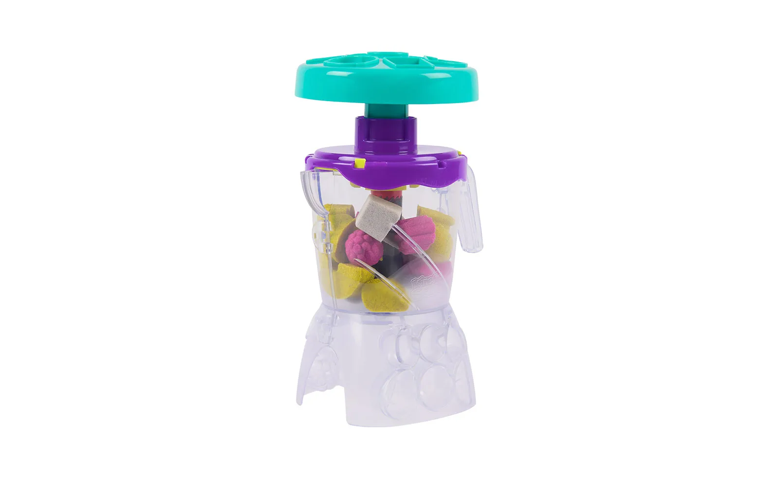 With the kinetic sand Smoothie Mixer, you can create real fruit art pieces! With this fun set, children can shape, stack, mix, slice, and squish their smoothies and popsicles, encouraging creativity and imagination. Kids will enjoy the game as they shape fruit and add-ons on the lid, drop ingredients into the cup and press for mixing, just like in a real smoothie blender. With the play sand (396 g), you can pour your smoothie creations into a serving cup or apply the sand in a popsicle mold for a beautiful artwork. Kinetic sand aids in the development of fine motor skills and sensory abilities and is suitable for individual or group play as it promotes social interaction. The set includes: 396 g of kinetic sand, 1 mixer cup, 1 mixer lid, 1 smoothie cup, 1 cup lid, 1 straw, 1 mold, and 2 popsicle sticks.