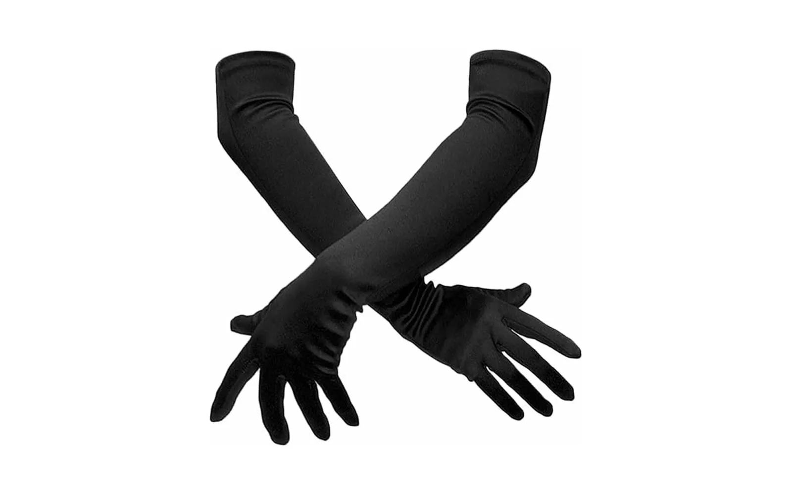 An elegant pair of long black gloves, 55 cm in length, ideal for complementing carnival or theme costumes. Made from a comfortable material that allows easy movement and adds a touch of sophistication to any look.